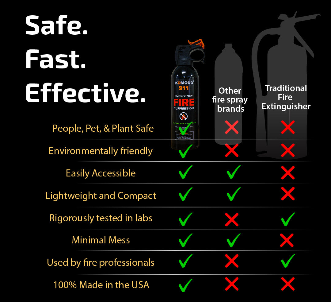 Safeguard your family and your property with Komodo 911 Fire Extinguishing Spray